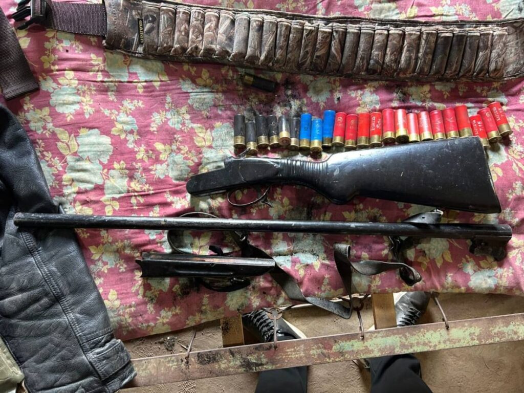 Обыск был проведён в зимовке, где расположен дом подозреваемого. В ходе следственных действий правоохранители нашли самодельное огнестрельное устройство типа «поджиг», два гладкоствольных ружья, два обреза, 104 патрона различного калибра, а также 30 рогов сайги — охраняемого животного, занесённого в Красную книгу.