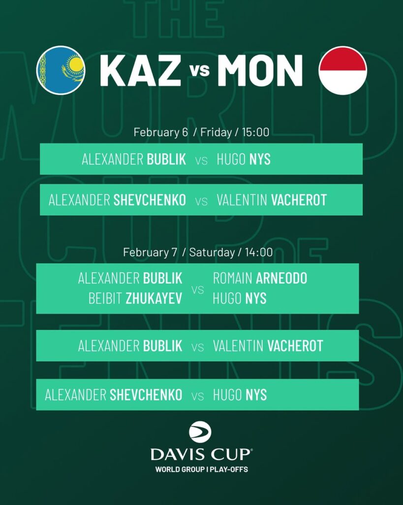 Противостояние стартует 6 февраля. В 15:00 на корт выйдет 10-я ракетка мира Александр Бублик — его соперником станет Уго Нис. Во втором матче дня сыграют Александр Шевченко и Валантен Вашро.