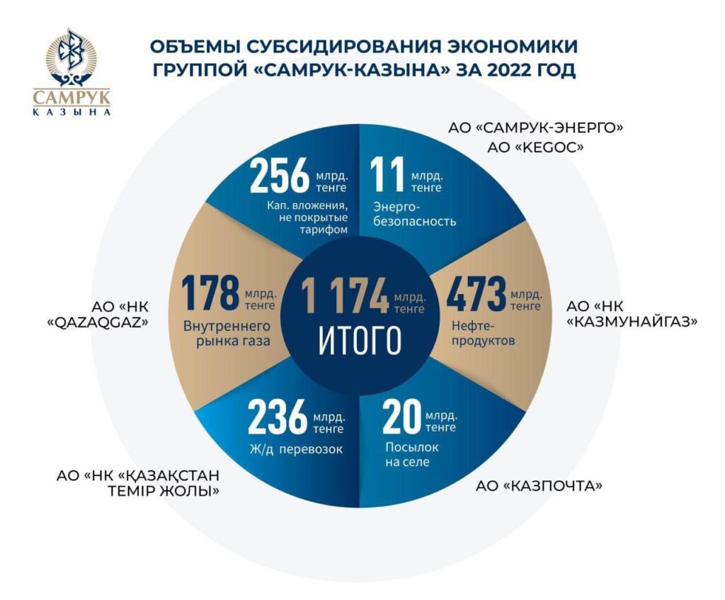 Телеграм-канал Energy Monitor пишет, что к сожалению нет данных за 2023 год, но в 2022 году прямые и скрытые субсидии портфельных компаний Фонда составили 1,2 трлн тенге (в 2023 году цифры должны быть больше).