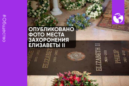 На снимке изображен камень, установленный на полу часовни в окружении букетов цветов…