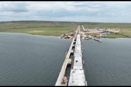 Мост через Бухтарминское водохранилище строят круглосуточно