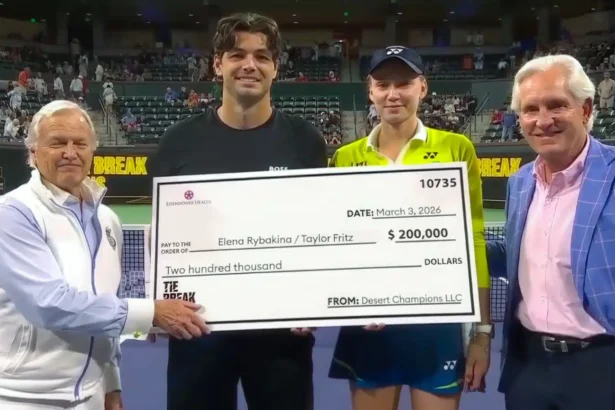 Казахстанская теннисистка Елена Рыбакина вместе с американцем Тейлором Фрицем выиграли выставочный турнир «Кубок Эйзенхауэра» в миксте -  смешанном парном разряде.