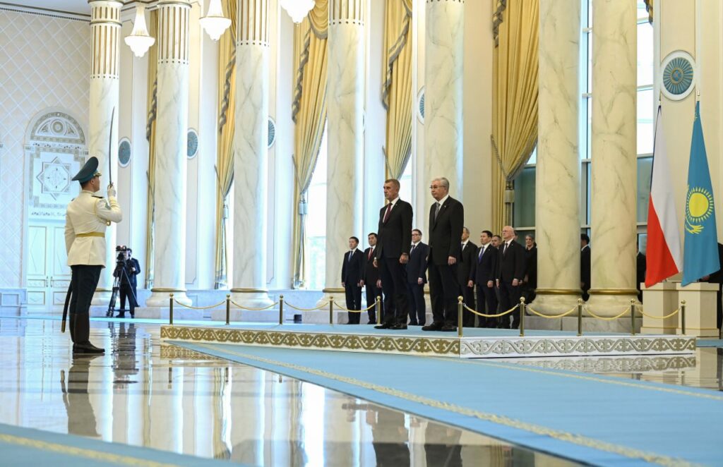 В ходе мероприятия Касым-Жомарт Токаев и Андрей Бабиш представили друг другу членов официальных делегаций. Начальник роты почетного караула отдал приветственный рапорт, прозвучали национальные гимны двух стран.