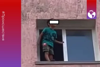 Стоял и кричал: мальчик едва не выпал из окна пятого этажа (видео)