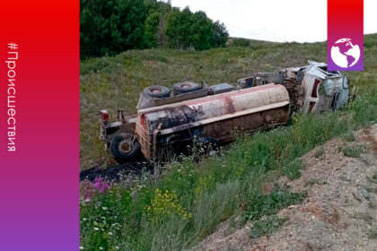 В Восточно-Казахстанской области в Курчумском районе опрокинулась в кювет цистерна с серной…