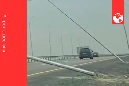 Опоры освещения не выдержали порывы ветра и рухнули на трассу республиканского значения…