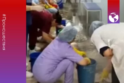 Персонал медучреждения дружно взялся за тряпки и ведра. Посетители ходят по лужам,…