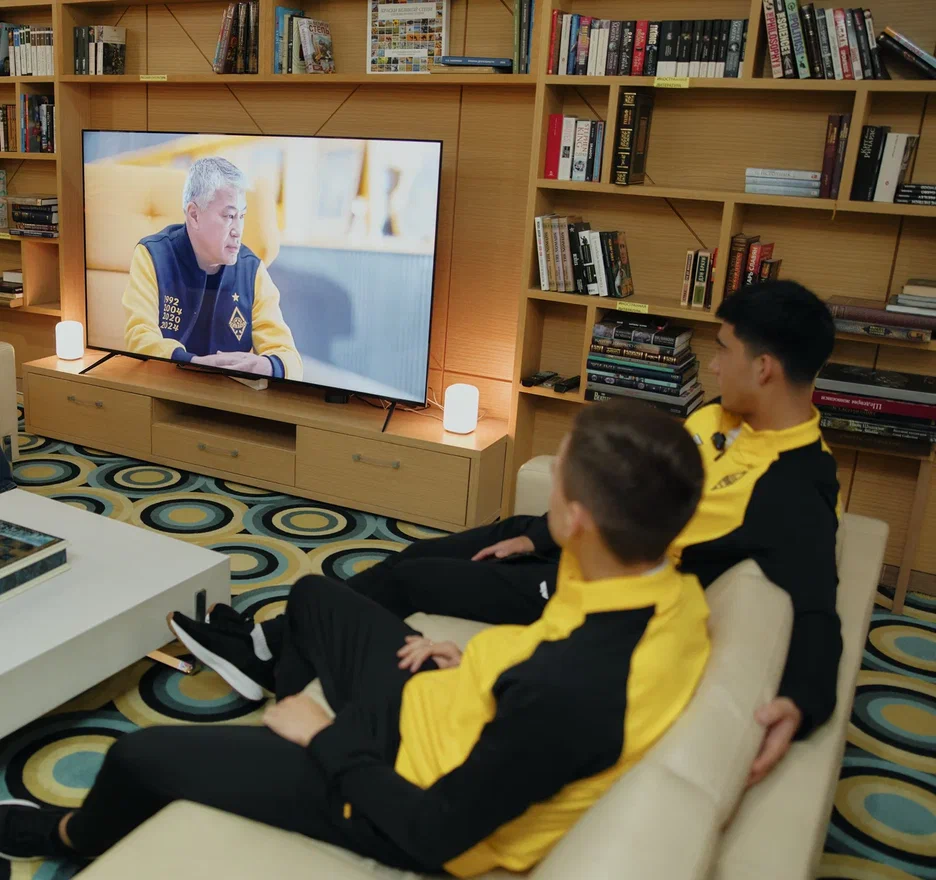 Комнаты отдыха основного и молодежного составов оснащены ТВ Станциями с Алисой. На них можно находить нужный контент и управлять им голосом, в том числе включать фильмы и сериалы на Кинопоиске. Для создания атмосферы в пространствах отдыха также установлены умные лампочки и эмби-лампы: включение, яркость и оттенки света можно регулировать голосом, а на эмби-лампах доступны режимы для любого настроения, от теплого «каминного» свечения до ярких световых эффектов в такт музыке.