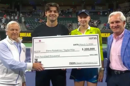 Казахстанская теннисистка Елена Рыбакина вместе с американцем Тейлором Фрицем выиграли выставочный турнир…