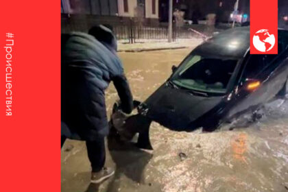 Два автомобиля провалились под асфальт в центре Караганды. На место ЧП приехали…