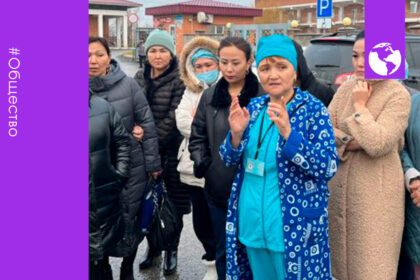 В Атырау около 40 сотрудников инфекционной больницы митингуют прямо у своей работы.…