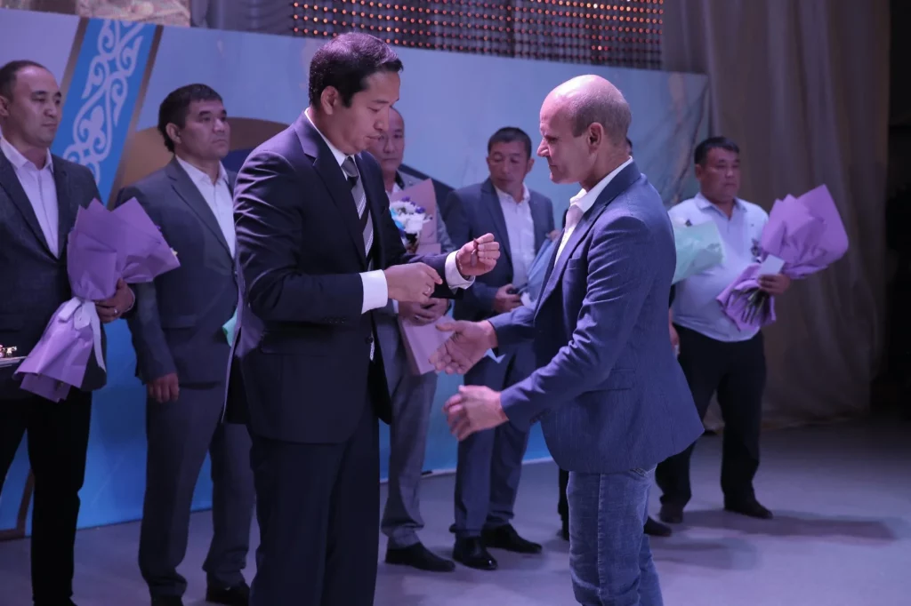 During the meeting, Mr. Ulanbai Usenov, the Deputy Akim of the region, presented best performing miners with badges «Eñbek ardageri» (Honored Laborer), «Qurmettі kenshі» (Respected Craftsman), and «Kenshі dańqy» (Skillful Worker), as well as honorary certificates from the regional Akim. In his turn, Nurakhmet Nuriev, the Chairman of the Board of LLP «Kazakhmys Corporation,» awarded the best workers of the regional enterprises with industry badges «Kenshі dańqy» and «Eñbek dańqy,» as well as honorary certificates from the company’s leadership.