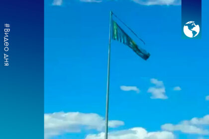 Порванный госсимвол сняли очевидцы над парком "Жастар". Их возмущению не было предела.…